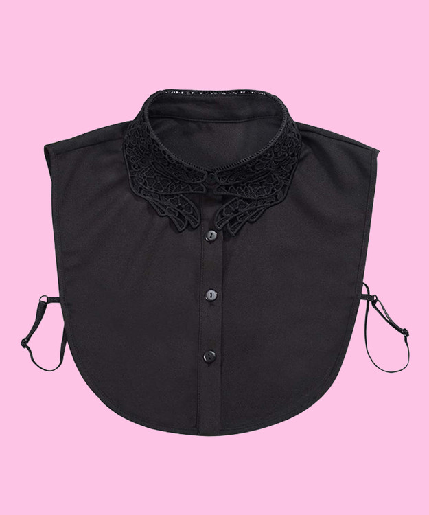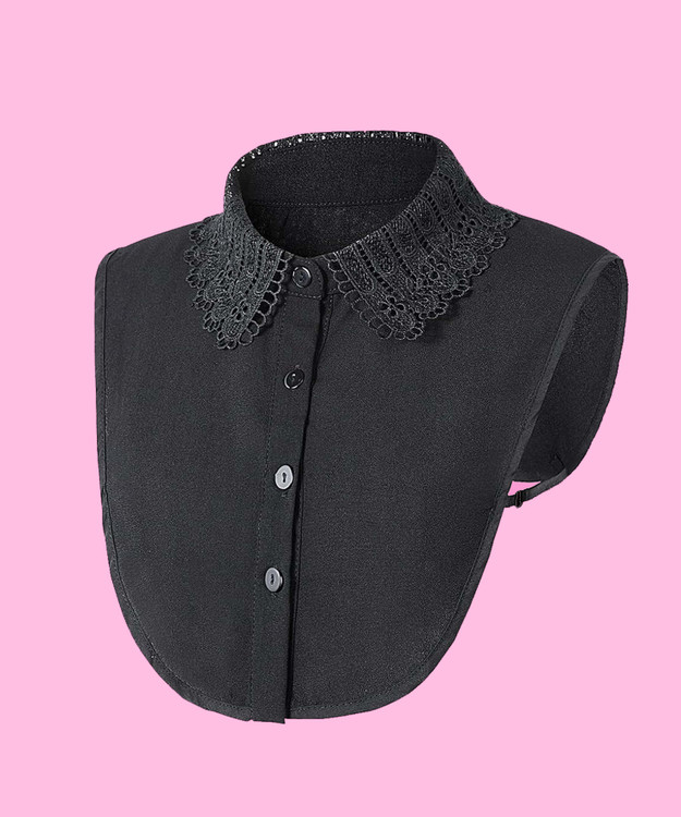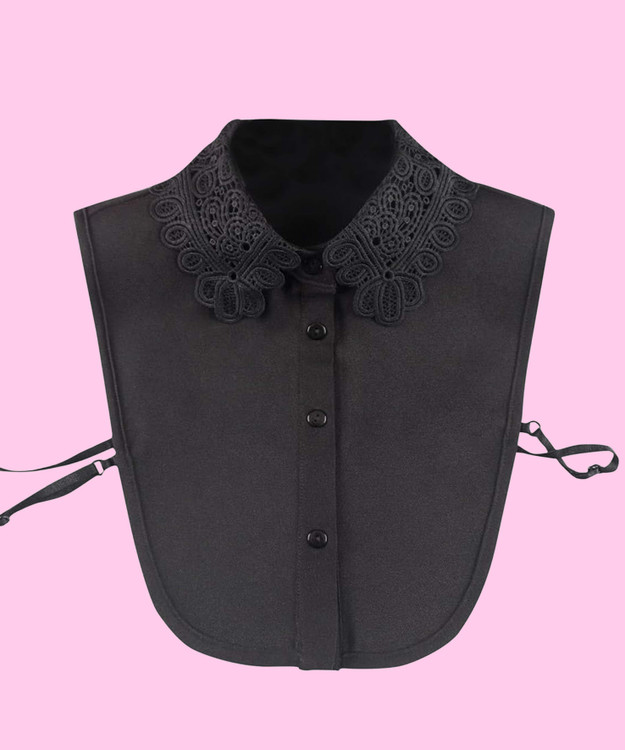 یقه فیک یا یقه حجاب مشکی تولیدی الهام با یقه گیپور و بدنه تترون اعلا کار شده درجه یک کار شده و بسیار راحت و کاربردی است. فری سایز است. از 38 تا سایز 48 قابل استفاده است. کنار یقه حجاب کش جهت فیکس ماندن کار شده است. برای خانمهایی که تا به امروز به خاطر بازی یقه یک لباس از پوشیدن آن محروم بودند این یقه فیک با پوشش کامل گردن و سینه این امکان را به شما می دهد.که علاوه بر تکمیل کردن پوشش خود در مجالس بدرخشید. هم تکی و هم عمده قابل سفارش است. میتوانید برای انتخاب نوع گیپور برای بالای یقه در واتس آپ پیغام دهید، ما نمونه های تصاویر گیپوربرای یقه ها را به شما ارسال میکنیم تا انتخاب کنید.