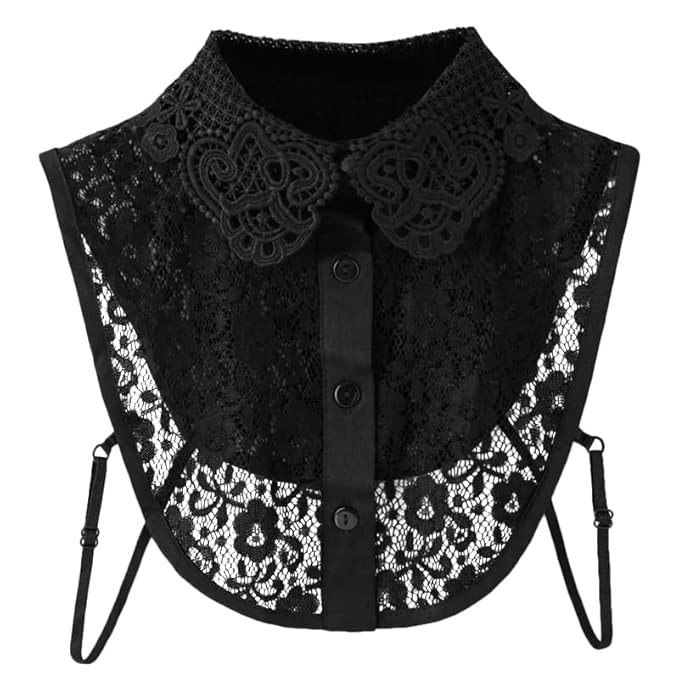 یقه فیک یا یقه حجاب مشکی تولیدی الهام با پارچه گیپور درجه یک کار شده و برای مصارف مجلسی بسیار راحت و مناسب است.، فری سایز است. تا از 38 تا سایز 48 قابل استفاده است. کنار یقه حجاب کش جهت فیکس ماندن کار شده است. برای خانمهایی که تا به امروز به خاطر بازی یقه یک لباس از پوشیدن آن محروم بودند این یقه فیک با پوشش کامل گردن و سینه این امکان را به شما می دهد.که علاوه بر تکمیل کردن پوشش خود در مجالس بدرخشید. هم تکی و هم عمده قابل سفارش است.