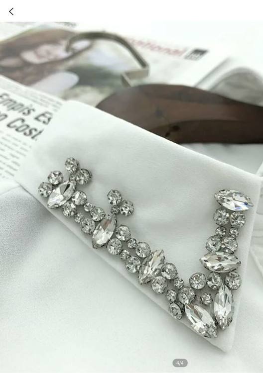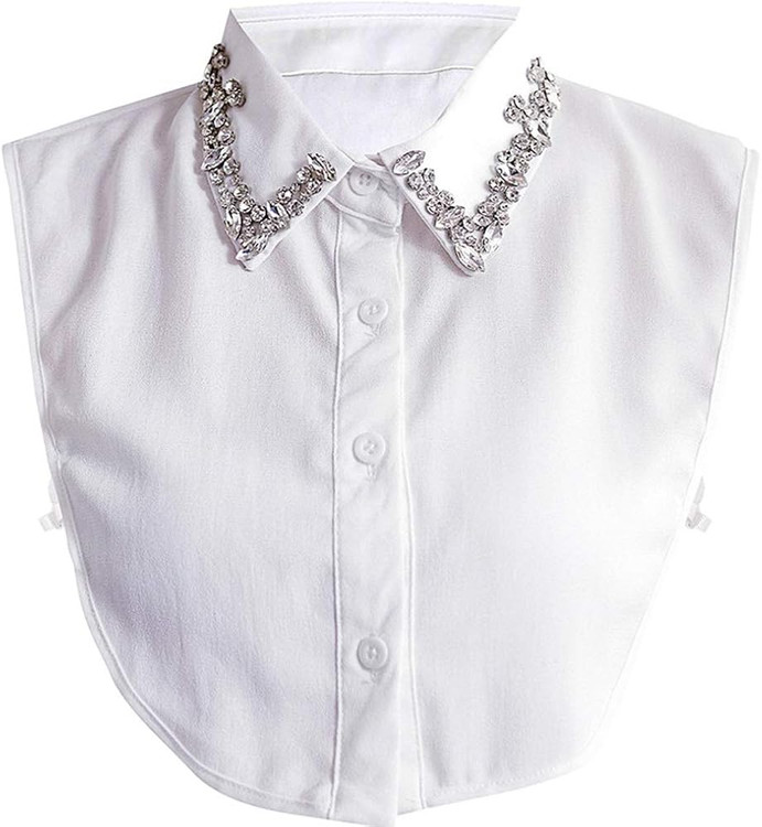 یقه فیک یا یقه حجاب مشکی و سفید سنگ دوزی شده تولیدی الهام با پارچه تترون درجه یک کار شده و برای مصرف روزانه بسیار راحت و مناسب است.، فری سایز است. از 38 تا سایز 48 قابل استفاده است. کنار یقه حجاب کش جهت فیکس ماندن کار شده است. برای خانمهایی که تا به امروز به خاطر بازی یقه یک لباس از پوشیدن آن محروم بودند این یقه فیک با پوشش کامل گردن و سینه این امکان را به شما می دهد.که علاوه بر تکمیل کردن پوشش خود در مجالس بدرخشید. هم تکی و هم عمده قابل سفارش است.